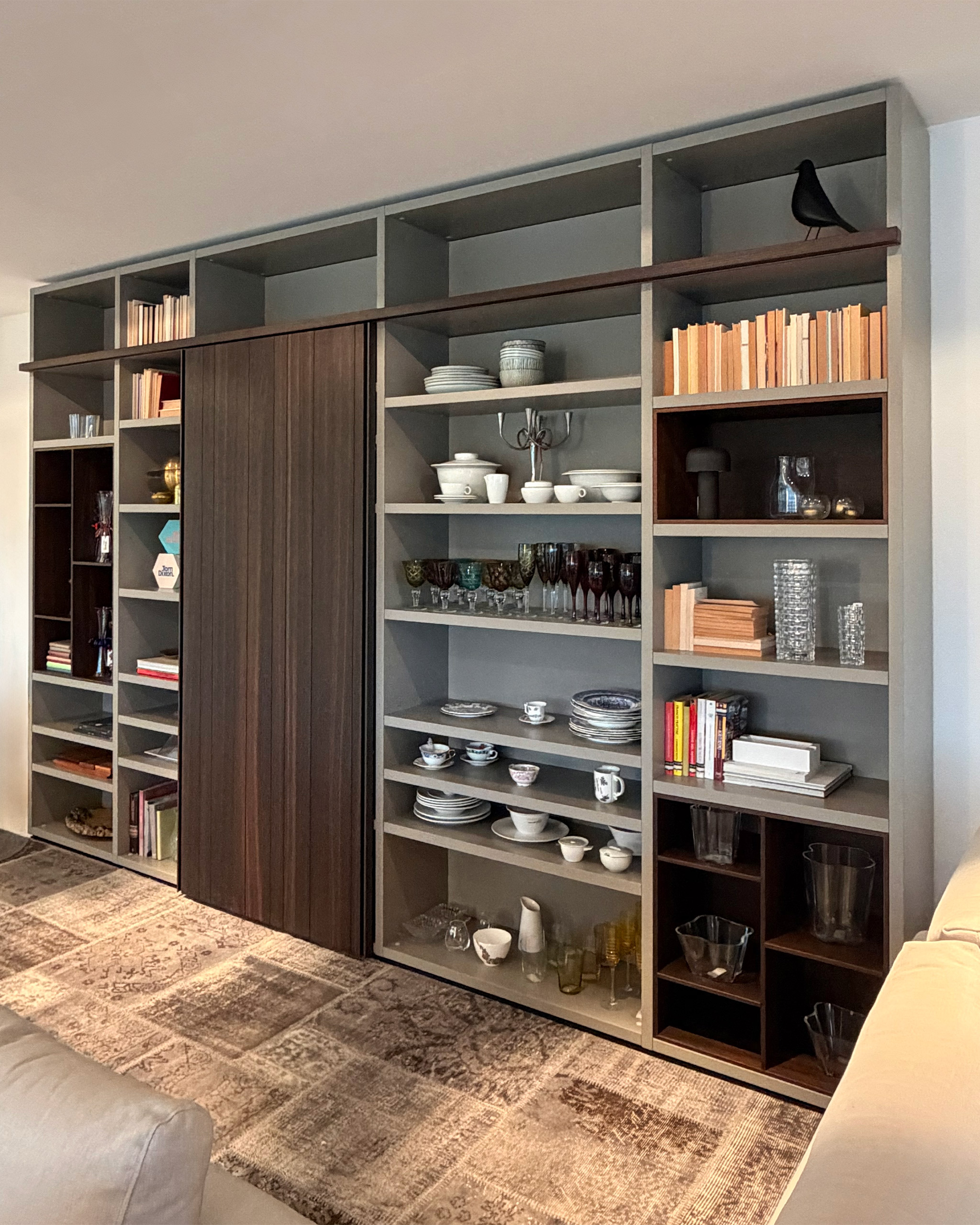 Wall System, el sistema històric de sala d’estar de Poliform, és un concepte de mobiliari en constant evolució que destaca per la seva gran versatilitat funcional i estètica. Basat en una llibreria amb estructura portant, s’alleugereix visualment gràcies a una quadrícula esvelta que integra prestatges, reixes divisòries i una porta corredissa. Dissenyat per exposar objectes, obres d’art, ceràmica i cristalleria, ofereix una àmplia varietat d’acabats capaços de potenciar qualsevol composició amb caràcter i estil.